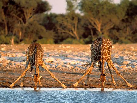 小朋友,你知道長頸鹿為何沒有辦法把牠長長的脖子伸到洞裡去?這是因為草食性的長頸鹿為了防範肉食性動物的攻擊,很少彎曲雙腿,讓牠整個身體都趴在地上。我們經常看到長頸鹿在喝水,或吃地上食物的時候,必須辛苦的叉開前腿,才能讓自己的頭剛好貼近地面,所以當然沒有辦法再把頭伸近深深的洞裡。