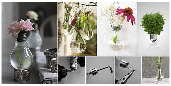 燈泡的發明,讓我們得以獲得光亮,然而,沒有了鎢絲的燈泡,竟然也可以化身藝術品。這個透明的燈泡瓶身,與植栽一同幻化出美麗的花藝,令人歎為觀止。