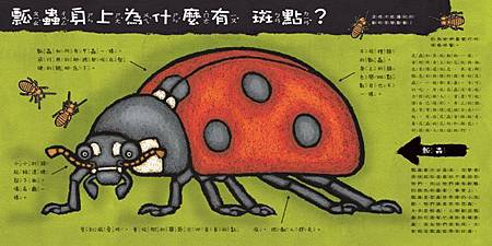 現在有一本書詳細介紹這些長見的昆蟲喔,《蟲蟲為什麼》就是在幫忙爸爸媽媽向孩子們解說昆蟲是什麼的一本書,大家可要仔細看呀,千萬不要被這麼大的圖片嚇到了喔!