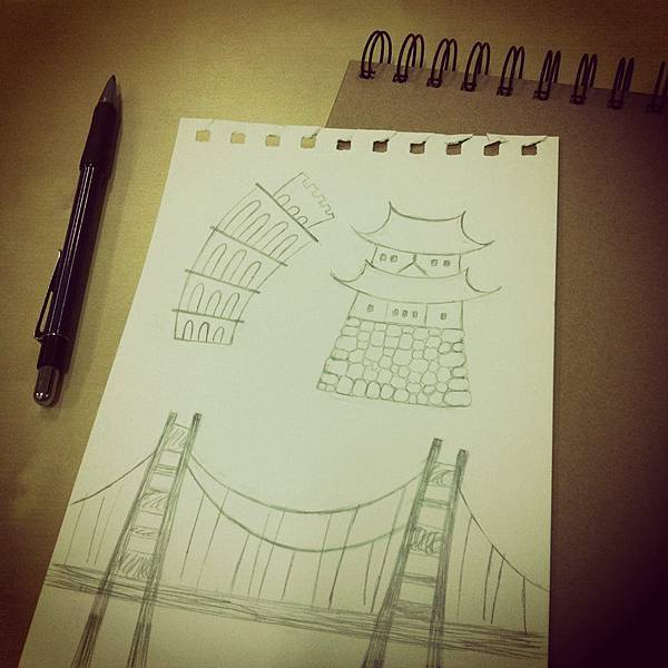 各位大小朋友,看著畫本中的畫出的建築物,猜得出它們是位在哪個地方的知名建築嗎?