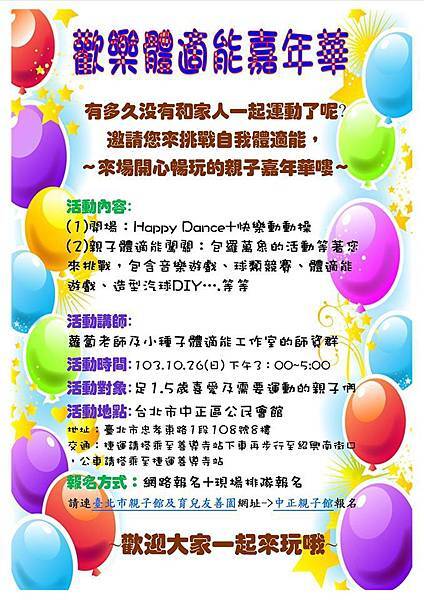 活動對象:足1.5歲喜愛及需要運動的親子們