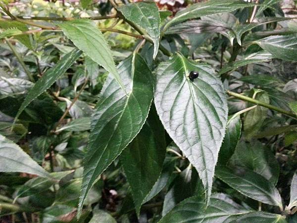 這是台灣青莢葉,又名葉長花、葉上珠,屬山茱萸科。每年四月,台灣青莢葉的葉片在葉脈上會開出小小的花,花後出現小果實,由綠轉黑,像極了葉片綴上一顆黑珍珠!