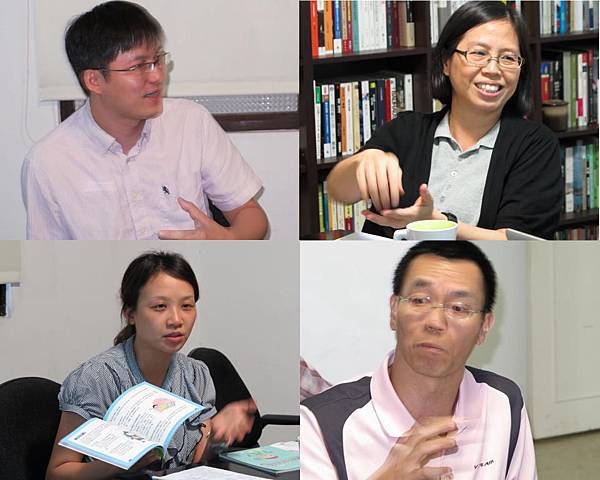 (左上,台灣使用者經驗設計協會李易修先生;左下,兒福聯盟研究發展處組長邱靖惠小姐;右上,台北市是教育大學副教授林佩蓉小姐;右下,敬業文教服務有限公司,楊豫揚先生)