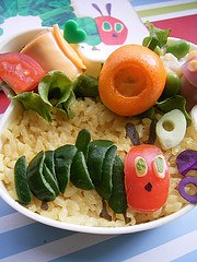 小朋友和爸媽?看得出來這個便當裡的主角是從那裡來的嗎?答案:艾瑞.卡爾的《好餓的毛毛蟲》