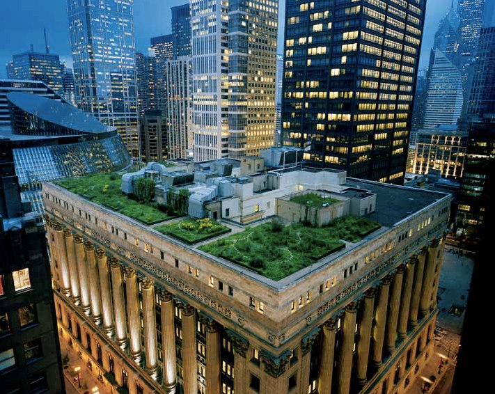 註:圖片是芝加哥某幢綠色屋頂的建築,芝加哥也是北美領先的“綠色屋頂”的城市。