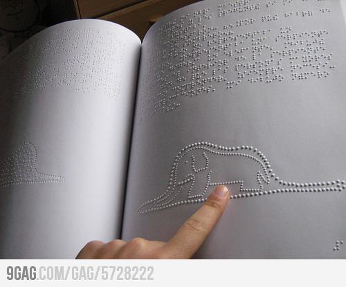平面的文字成了如浮雕般的點字,隨著指尖的碰觸,以觸覺閱讀。點字為視覺不便的人帶來了另一種閱讀世界的可能。